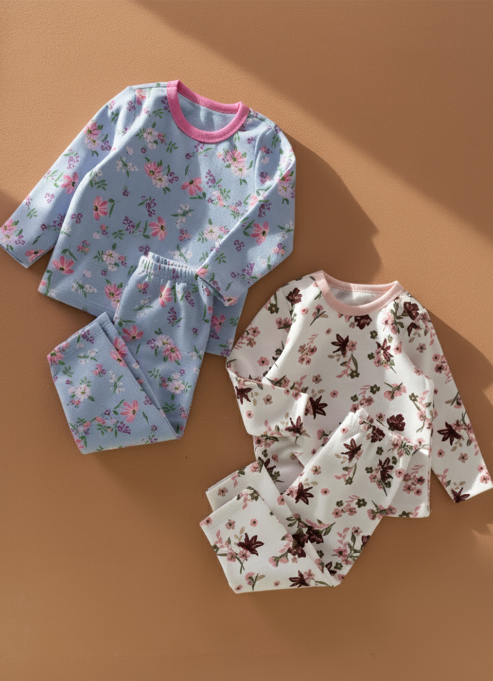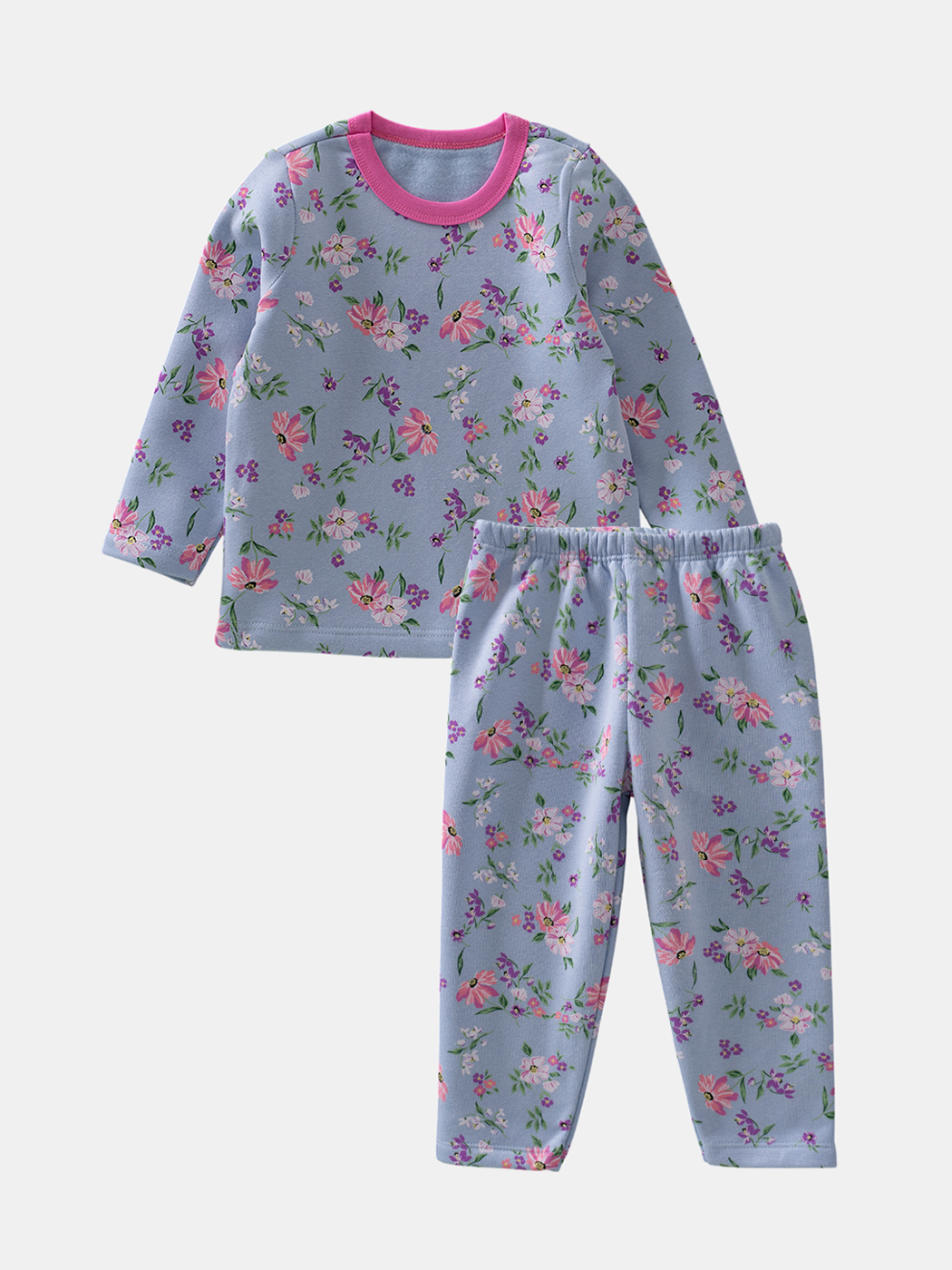 Çiçek Desenli Pijama Takım 2-7 Yaş Lila