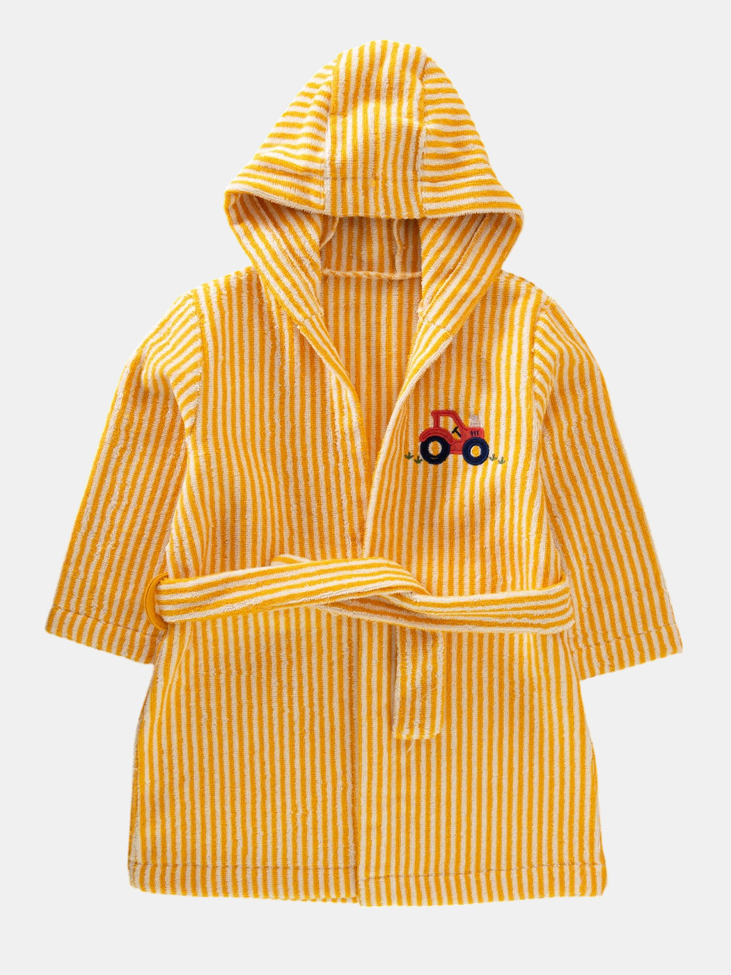 Çocuk Traktör Nakışlı Havlu Bornoz 2-7 Yaş Turuncu