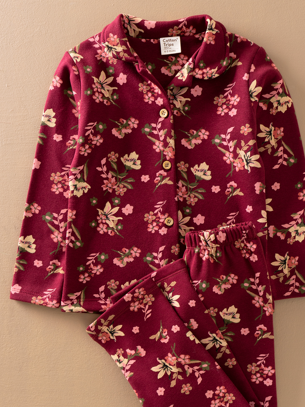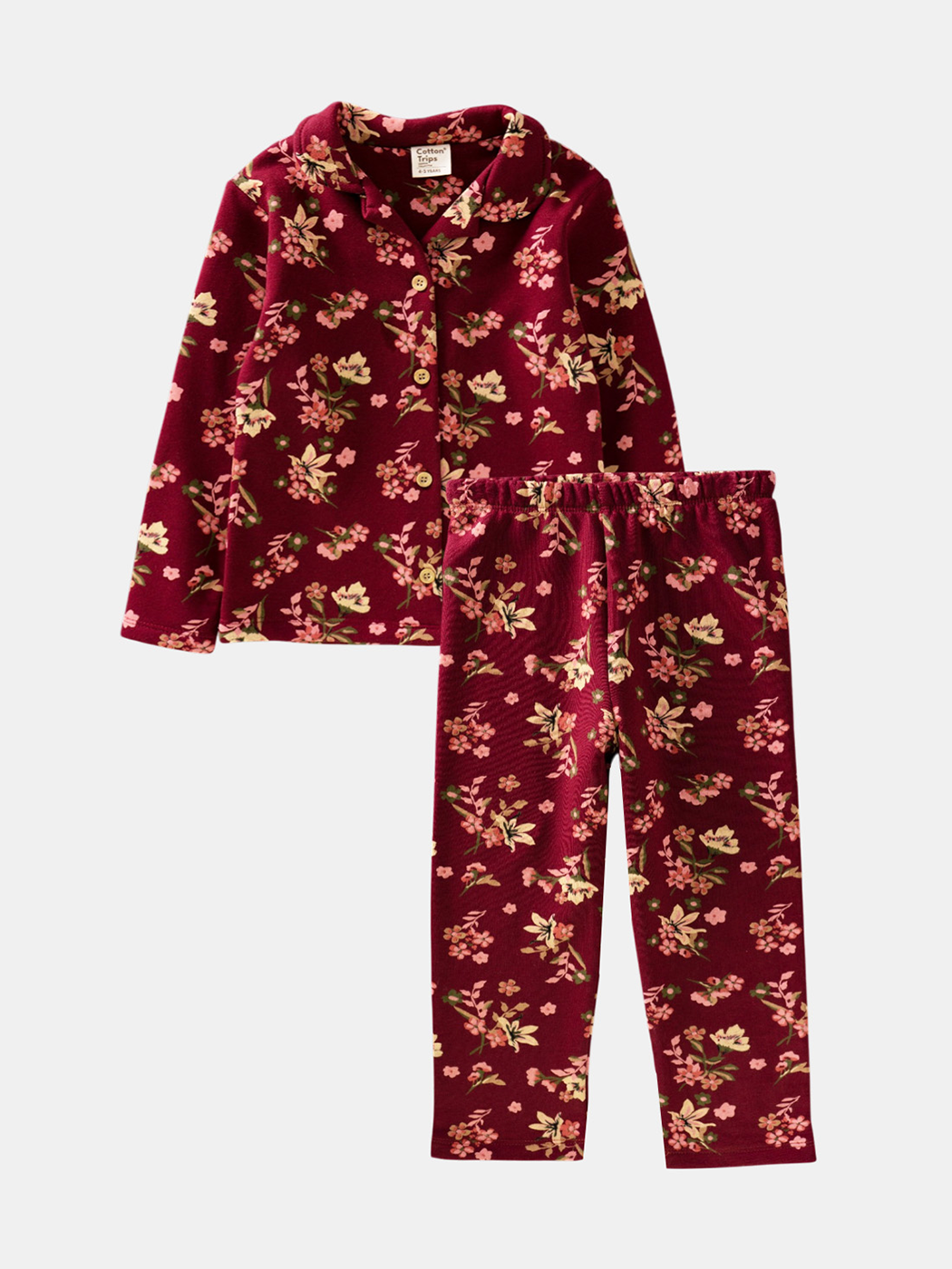Cotton Trips Çiçek Desenli Pijama Takım 2-8 Yaş Bordo