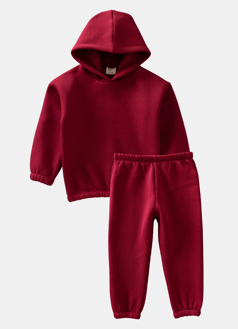 Cotton Trips Çocuk 3 İp Şardonlu Kapşonlu Takım (2-8 Yaş) - Bordo