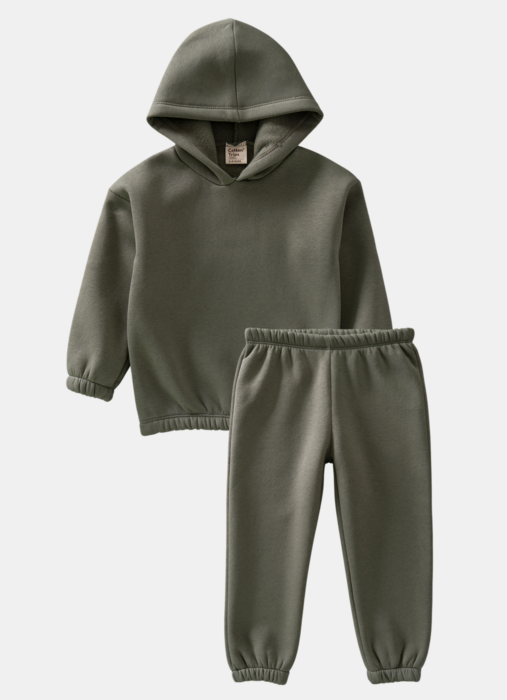 Cotton Trips Çocuk 3 İp Şardonlu Kapşonlu Takım (2-8 Yaş) - Haki