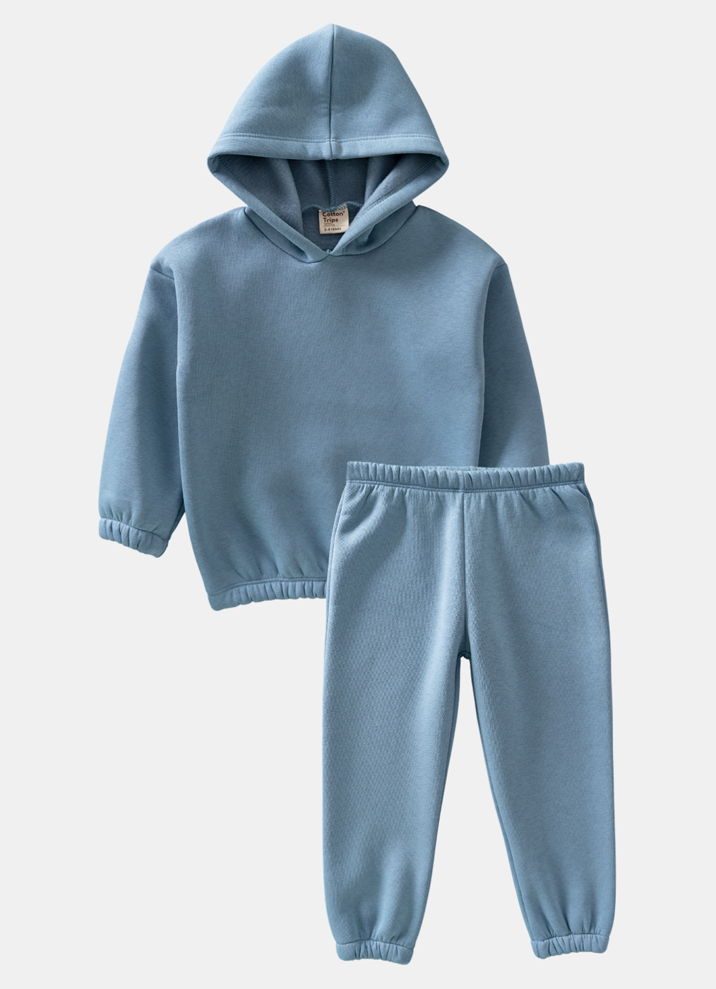 Cotton Trips Çocuk 3 İp Şardonlu Kapşonlu Takım (2-8 Yaş) - Mavi
