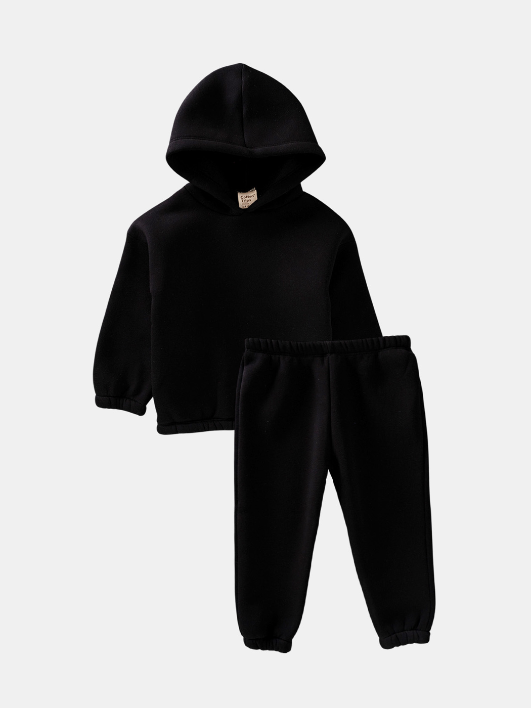 Cotton Trips Çocuk 3 İp Şardonlu Kapşonlu Takım (2-8 Yaş) - Siyah