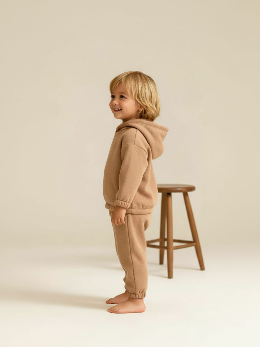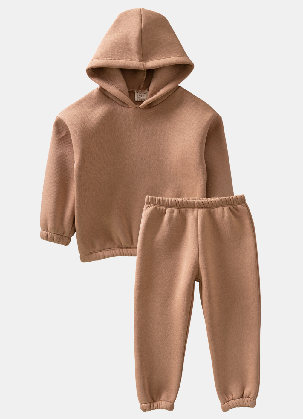 Cotton Trips Çocuk 3 İp Şardonlu Kapşonlu Takım (2-8 Yaş) - Sütlü Kahve