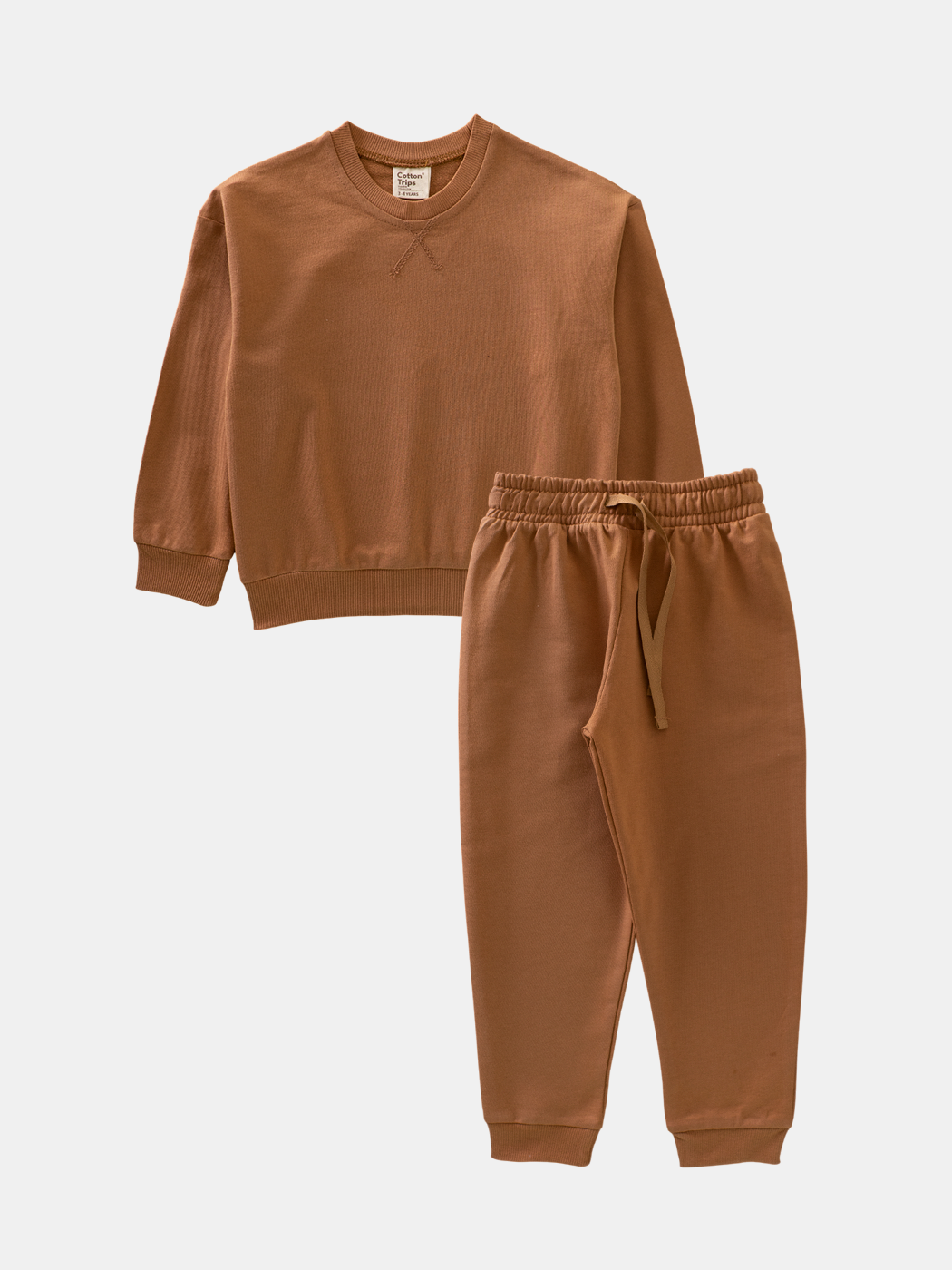 Cotton Trips Çocuk Karyoka Sweatshirt Takım (2-7 Yaş) Orta Kahve