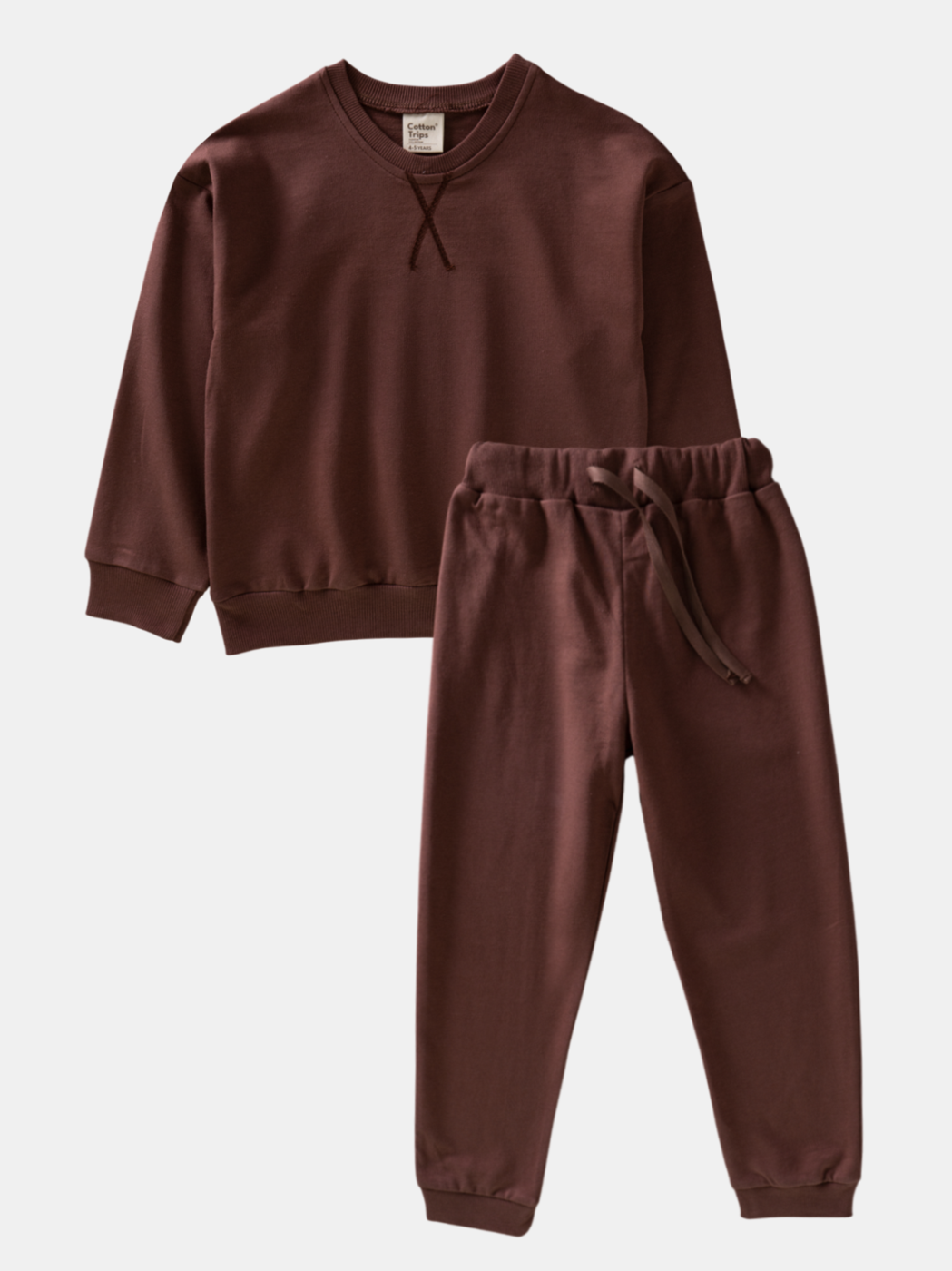 Cotton Trips Çocuk Karyoka Sweatshirt Takım (2-8 Yaş) - Kahverengi