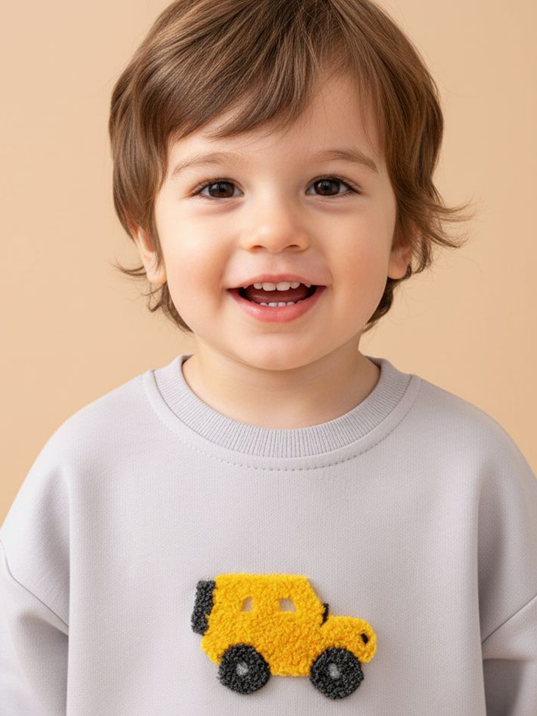 Cotton Trips Çocuk Taşıt Konsept Süzene Sweatshirt (2-7 Yaş) - Gri