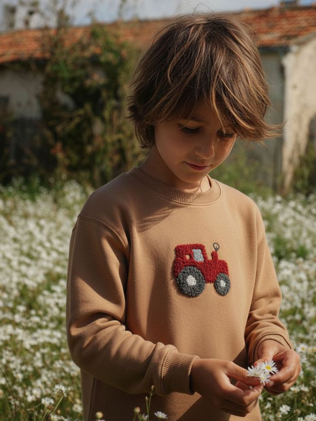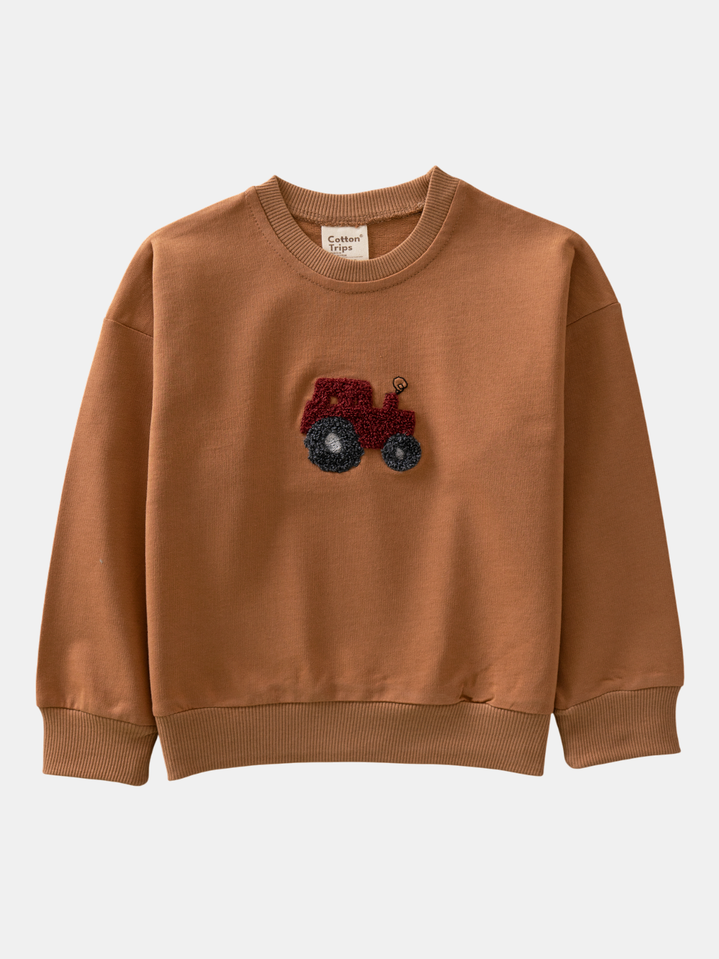 Cotton Trips Çocuk Taşıt Konsept Süzene Sweatshirt (2-7 Yaş) - Kahve